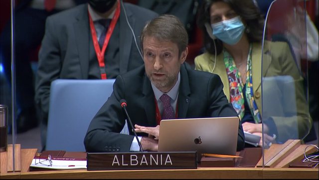 “Këshillit nuk duhet t’i rrëfehen trillime apo histori shtangëse. Duhen prova të verifikuara në mënyrë të pavarur dhe të konfirmuara. Ky nuk është rasti. Ne duhet të jemi të shqetësuar për këtë dizinformim, për shtimin e akuzave për armë të shkatërrimit në masë, një mënyrë që Rusia e përdor për të përgatitur terrenin për përdorimin e armëve kimike e biologjie gjatë sulmit që po kryen në Ukrainë, por për të akuzuar të tjerët se po e bëjnë këtë”, u shpreh ai.