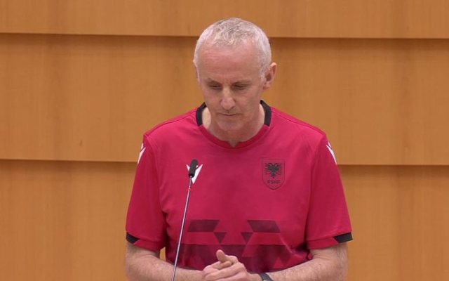 Eurodeputeti Ciaran Cuffe, i cili mbajti një fjalim në Parlamentin Evropian teksa kishte veshur bluzën e kombëtares shqiptare, ka dhënë një intervistë për emisionin “Abc-ja e mëngjesit”. Ai tha se fanella kuq e zi ishte një mënyrë e mirë për të treguar mbështetjen ndaj Shqipërisë për hapjen e negociatave.