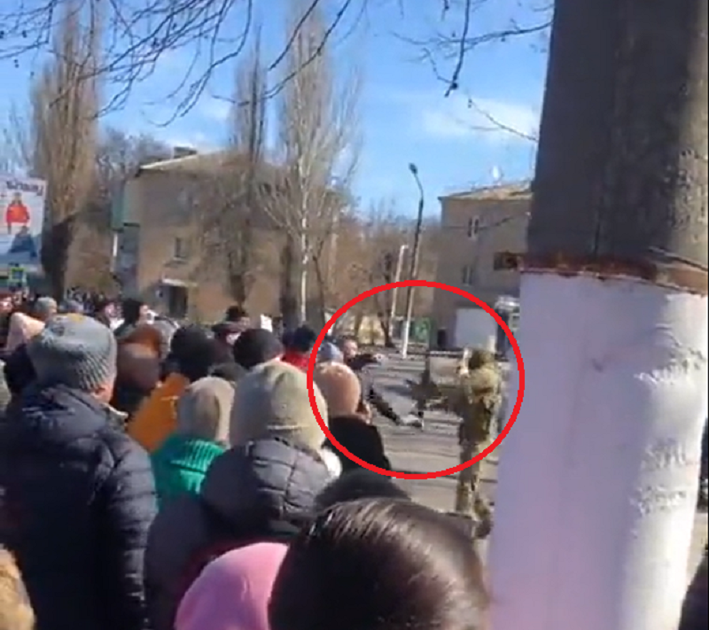 Po ashtu, shihet një person i cili konfrontohet me një ushtar rus të armatosur.