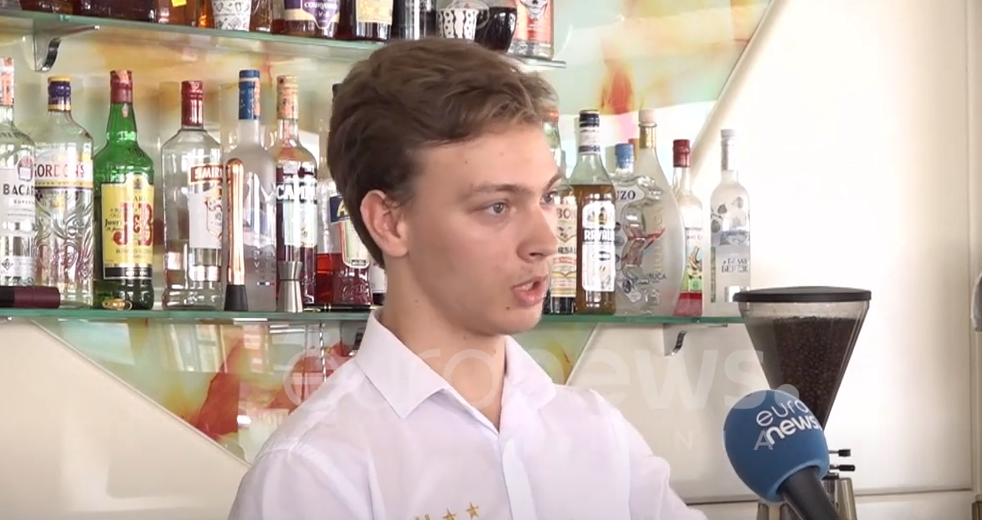 Euronews Albania mundi ta intervistonte djalin i cili punon si kamarier në një lokal në Durrës, në zonën e plazhit.