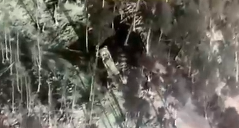 Në një postim në Twitter, Illia Ponomarenko nga Ukraina, ka publikuar një video kur Ushtria ukrainase me dronin ‘Bayraktar TB2’, shkatërrojnë raketa hedhësin BM-27 Uragan rus.