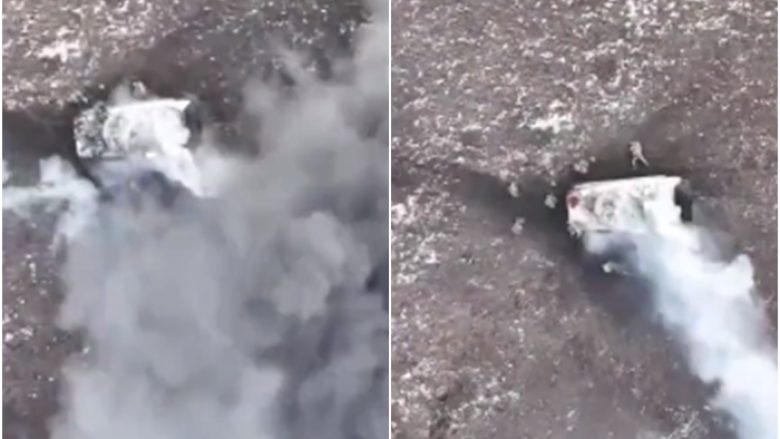 Ky është momenti kur forcat ukrainase shkatërrojnë një tank rus që si duket ishte i mbushur plot me ushtarë.