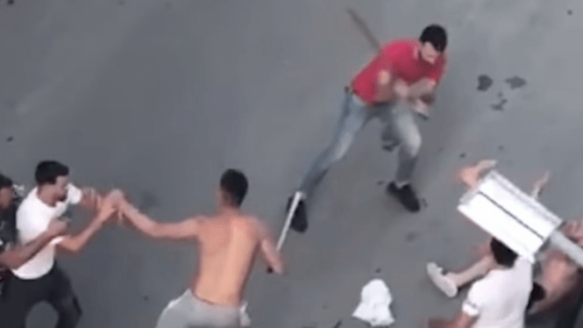 Aty duket se mbajnë në duar shufra hekuri dhe shkopinj teksa godasin me forcë njëri-tjetrin në mes të rrugës. Ndonëse makinat dhe banorët kalojnë pranë tyre, ata nuk ndalen dhe vijojnë të zihen duke përdorur shufrat e hekurit dhe shkopinjtë.