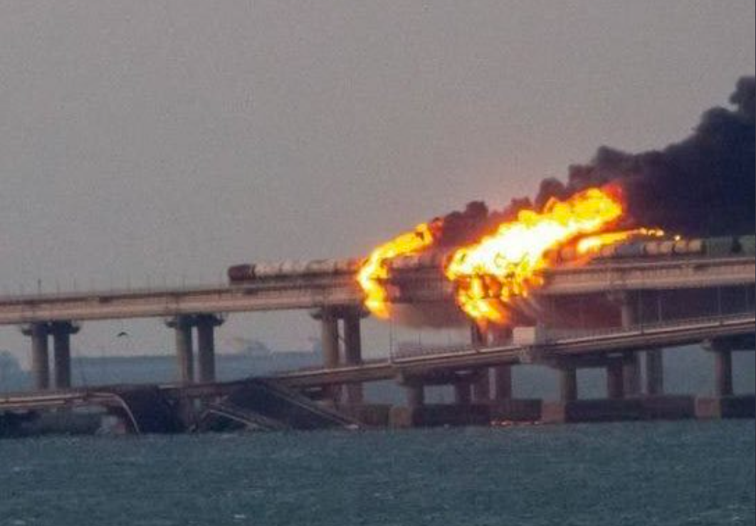 Komiteti Kombëtar i Antiterrorizmit rus i tha RBC se një kamion u hodh në erë në urën e Krimesë, gjë që çoi në zjarrin e shtatë rezervuarëve të karburantit të trenit dhe në shembjen e pjesshme të dy hapësirave të makinave.