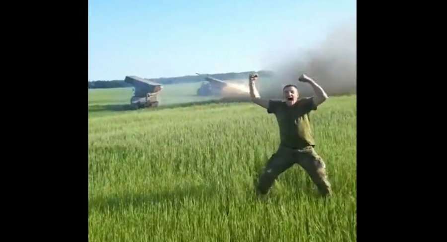 Një ushtar ukrainas iu gëzua shumë sulmeve raketore drejt caqeve ruse. Në Twitter u publikuan të mërkurën pamjet e ushtarit që pak para se të lëshoheshin raketat, nisi ta “festonte” momentin.