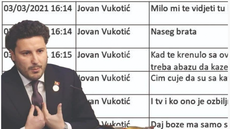 “Gëzim kur të shoh aty afër Abazit, vëllait tonë, ai punon për ne ” ishte njëra prej porosive që Vukotic e kishte shkruar në mars të 2021’së, zyrtarit të lartë policor malazez Dalibor Medojevic.