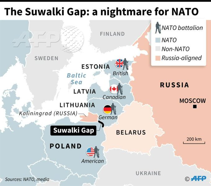 Ai, si shumë zyrtarë dhe analistë perëndimorë, shqetësohet se Rusia, në konflikt me Perëndimin, mund të shpërthejë njëkohësisht në një korridor nga lindja dhe perëndimi dhe kështu t’i ndajë shpejt dhe efektivisht të tre vendet baltike nga Polonia dhe aleatët e tjerë në jug.