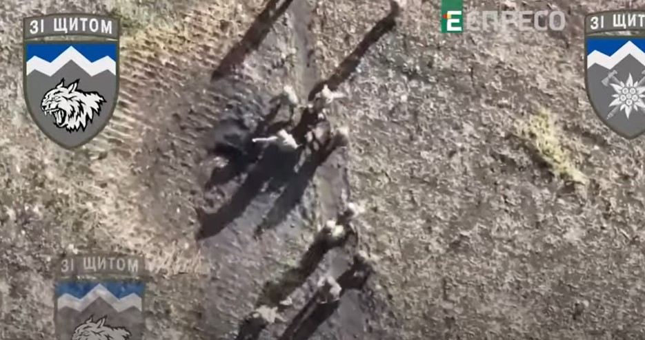 Ndërsa një grup i ushtarëve rusë ishin duke bartur një ushtar të plagosur droni i batalioni të veçantë sulmues malor 10 OGSHBr hedhë një bombë të vogël duke i eliminuar grupin e ushtarëve rusë.