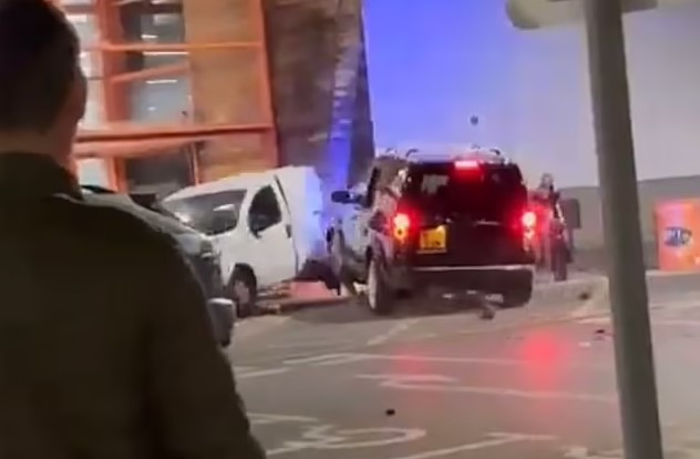 Blerësit e një dyqani u shtangën nga pamja e një Land Rover-i që u përplas disa herë drejt një furgoni të bardhë. Turma u mblodh jashtë dyqanit në Farnborough, Hampshire, gjatë së martës teksa një mjet i zi me drita policie u përplas pas furgonit Peugot.