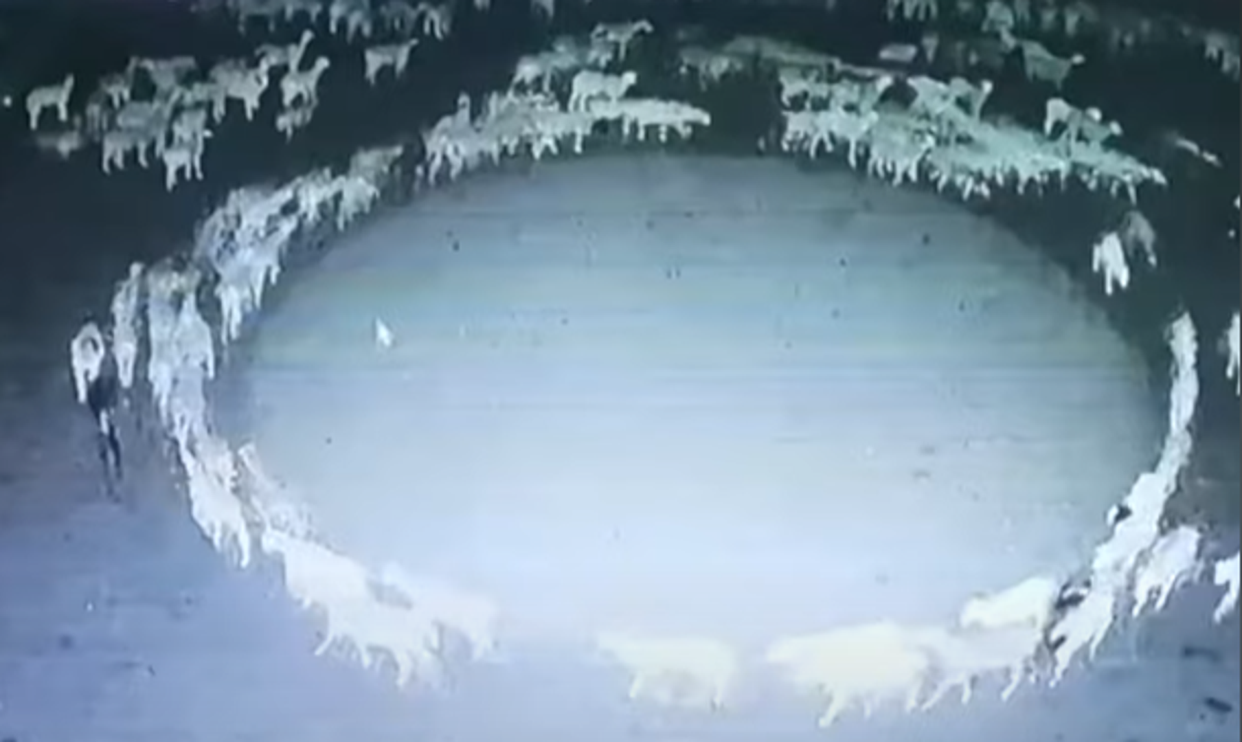 Në video, mund të shihen edhe disa dele duke qëndruar plotësisht të palëvizshme, por duke ruajtur ende formën rrethore.