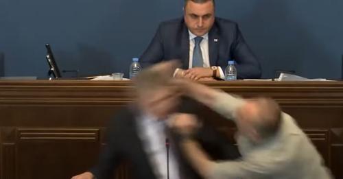 Pamjet e transmetuara në televizionin gjeorgjian shfaqën Mamuka Mdinaradzen, kreun e partisë në pushtet “Ëndrra Gjeorgjiane”, një forcë shtytëse pas projektligjit, duke u grushtuar nga deputeti i opozitës, Aleko Elisashvili teksa fliste nga foltorja.