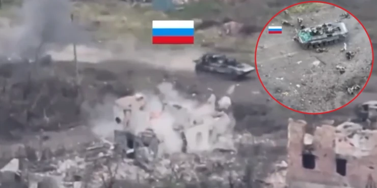 Videoja e +18, e regjistruar nga një dron zbulues, tregon një shkëmbim të ashpër zjarri mes dy palëve, pas së cilës një grumbull trupash rusë shihen të vrarë në rrugë.