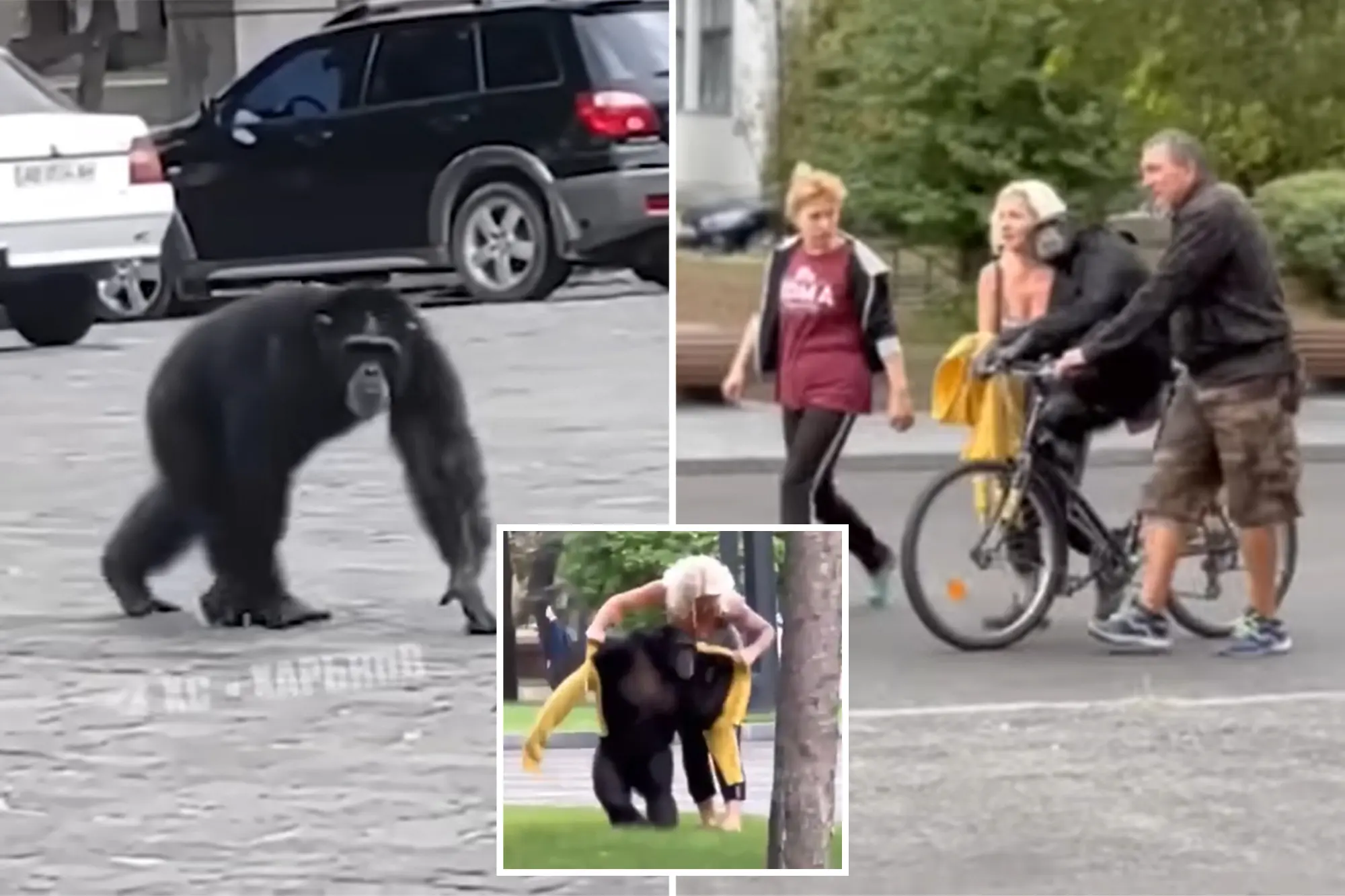 Një shimpanze në Kharkiv të Ukrainës u arratis nga një kopsht zoologjik – vetëm për t’u kthyer me biçikletë ndërsa kishte veshur një pallto shiu.