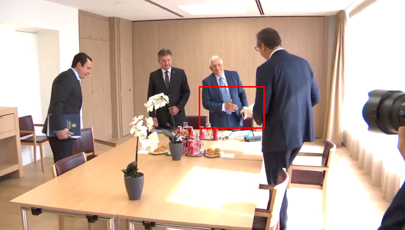 Kurti hyri i pari në dhomën e takimit dhe pyeti Borrellin dhe Miroslav Lajcakun se në cilën anë duhej të ulej. E orientoi Lajcaku.