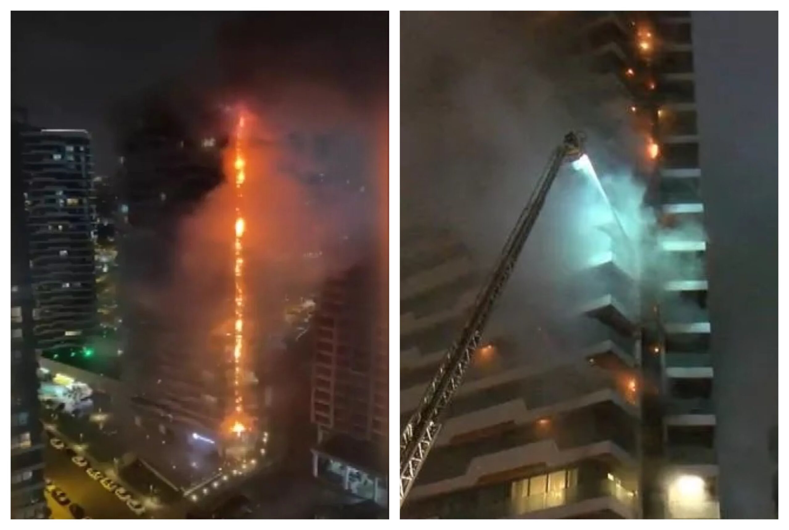 Pamjet nga incidenti tregojnë një skenë të tmerrshme ku tymi del nga ndërtesa, ndërsa flakët djegin lartësinë e kullës.