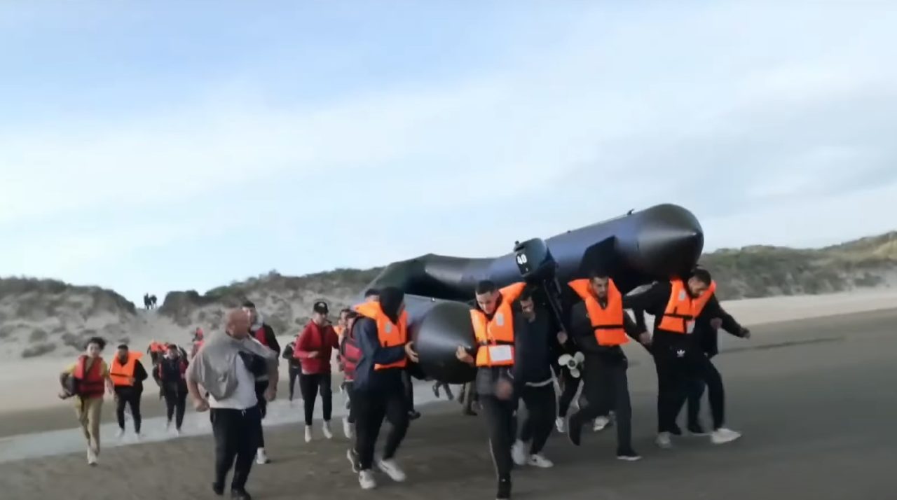 Një gazetar anglez i cili po raportonte pranë portit të Dunkirk ka filmuar momentin teksa një grup emigrantësh shqiptarë dhe afganë vrapojnë me një gomone për të hyrë në det që të kalojnë kanalin.