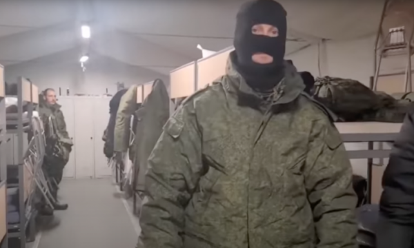 “Kështu duket tenda e ushtrisë ruse”, thotë në sfond serbi Dejan Beriq teksa hyn në një nga tendat në kampin stërvitor të Ushtrisë së Federatës Ruse.