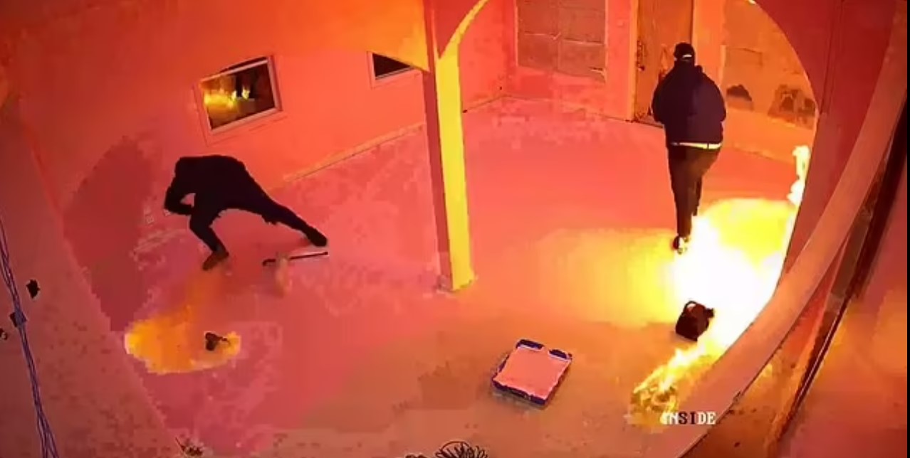 Kamerat e sigurisë kanë kapur momentin teksa një prej tyre ndez zjarrin pasi kishte hedhur benzinën më herët, dhe flakët përfshinë menjëherë ambientin, bashkë me dy personat brenda.